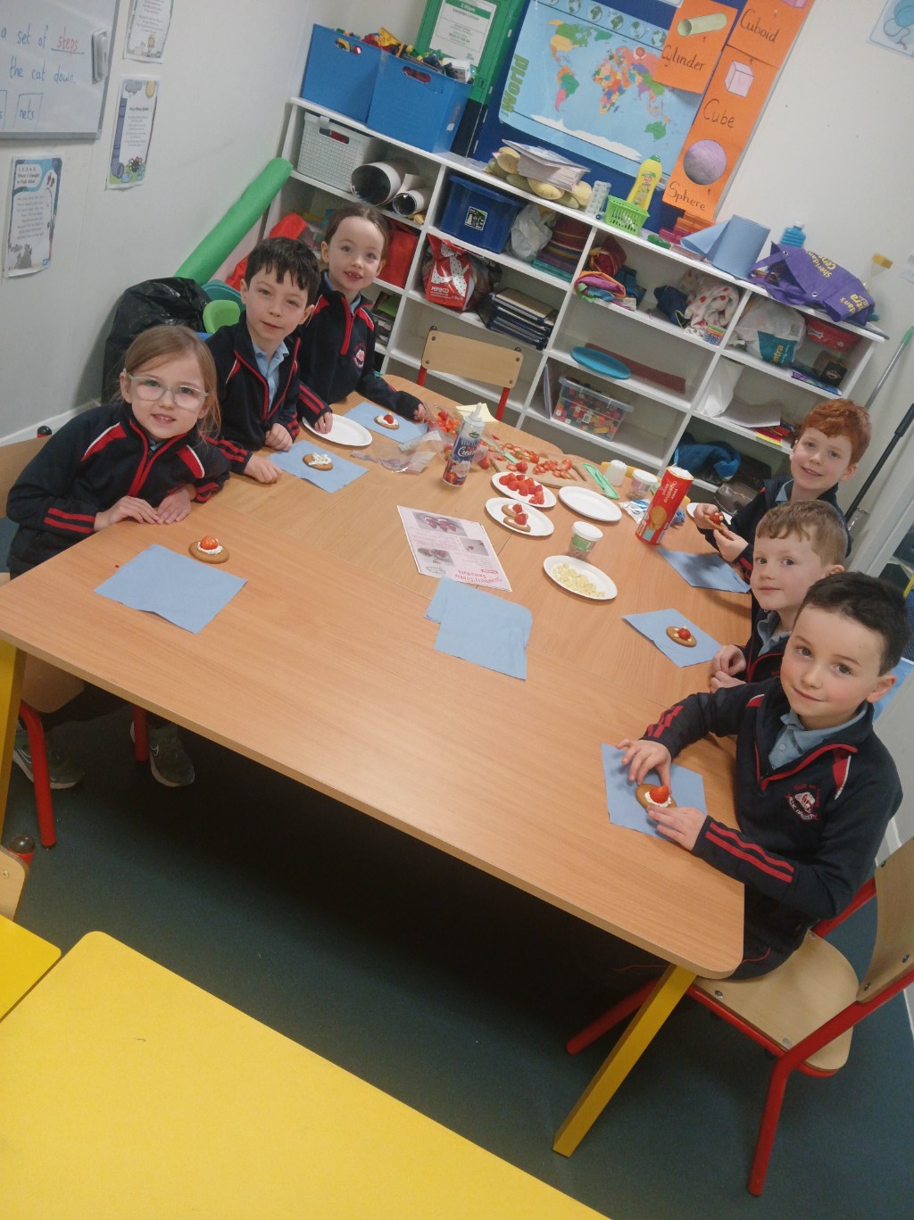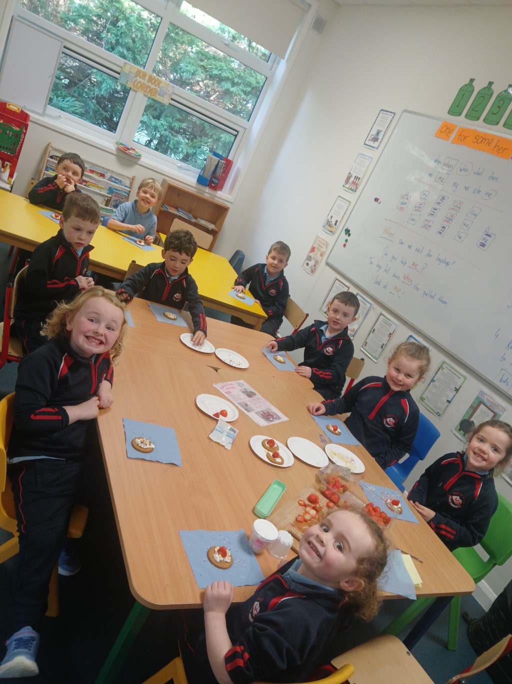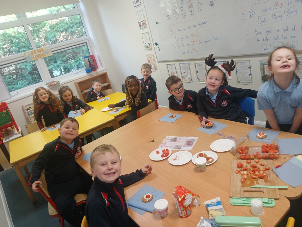 Junior and Senior infants had great fun today making Strawberry-Cookie Santa Hats!