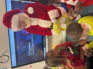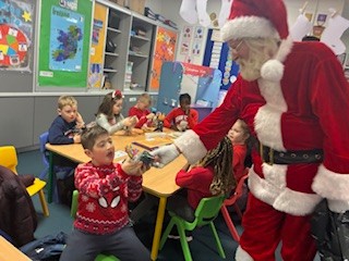 An exciting morning in school today with Santa visiting our class. He brought us some treats too!